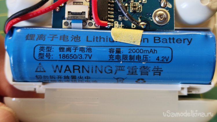 Внутри нас встречает аккумулятор вполне себе приличной заявленной емкости 2000 мА/ч с кучей надписей на английском и китайском языках.