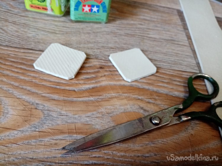 Простыми ножницами вырезаю квадратик. Срезаю уголки для большего дизайнерского эффекта. Приклеивать буду клеем Момент универсальный «Кристалл».