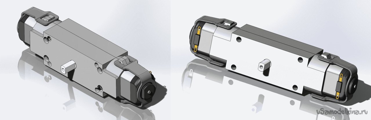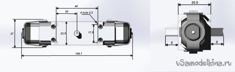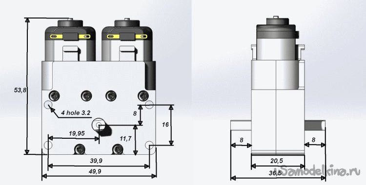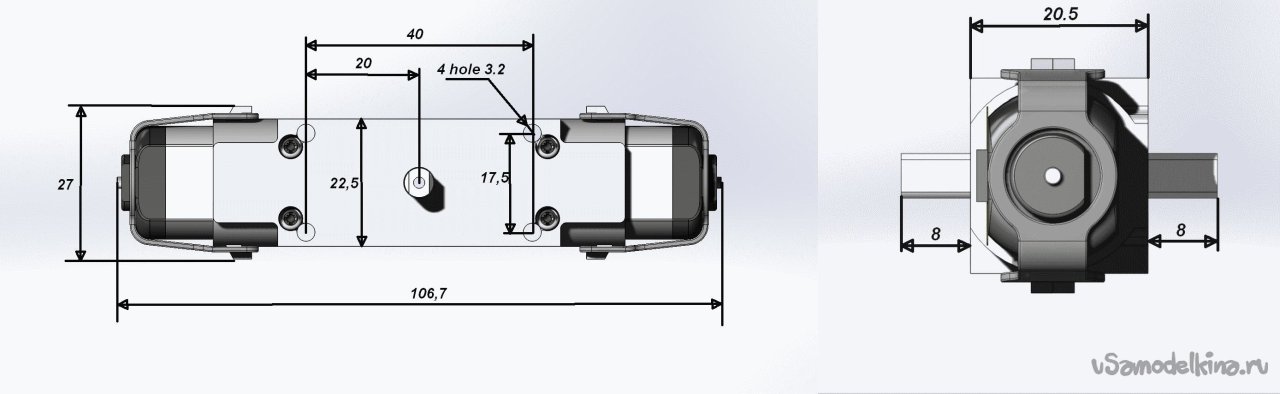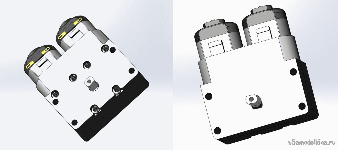 Как видно, я сделал два варианта конструкции: с соосным расположением моторчиков и с рядным. Начнем с соосного.