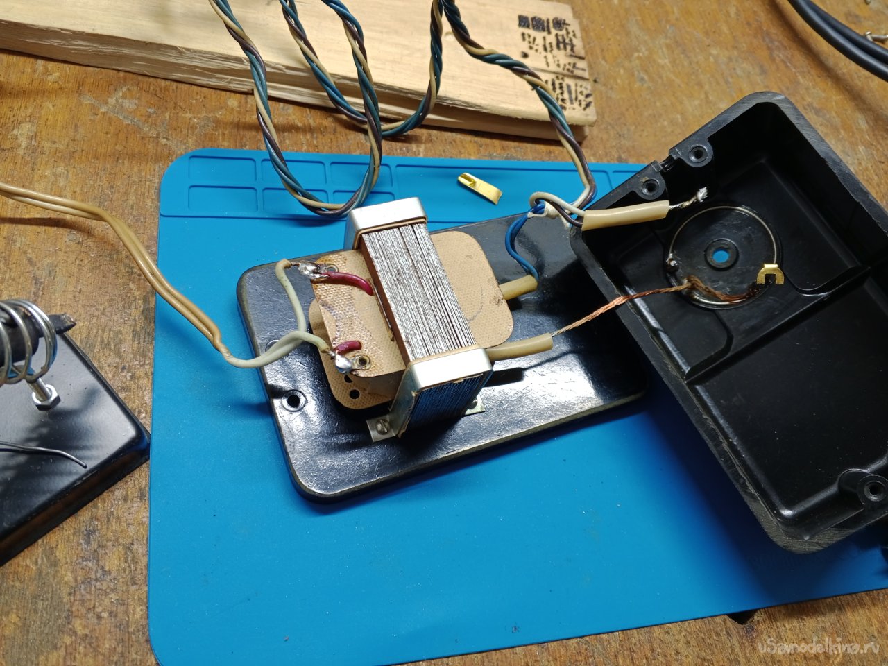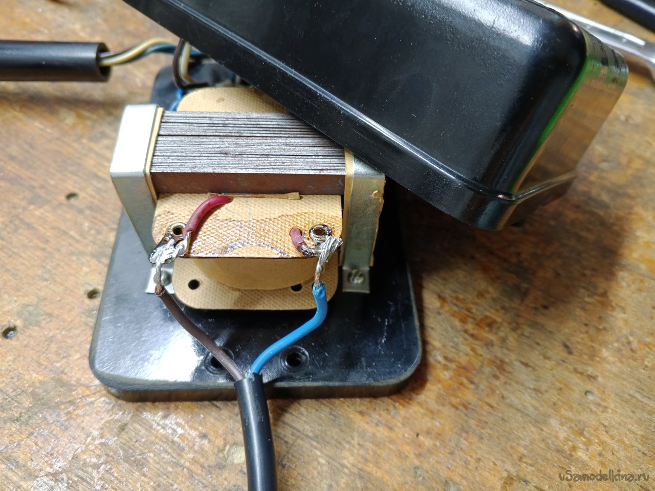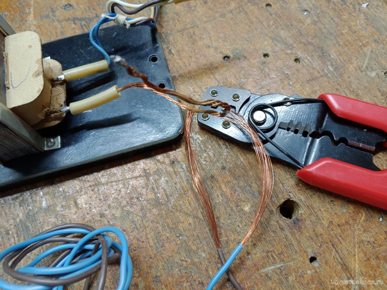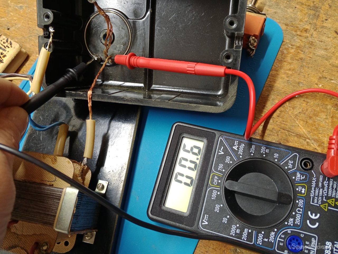 Решил измерить напряжение на выходе трансформатора без нагрузки, отпаял провод, идущий к нагревательному элементу, все равно перепаивать этот узел нужно будет. Замеры показали, 0,9 вольта на выходе и сопротивление резистивного элемента, получается, меньше Ома, по градации мультиметра.