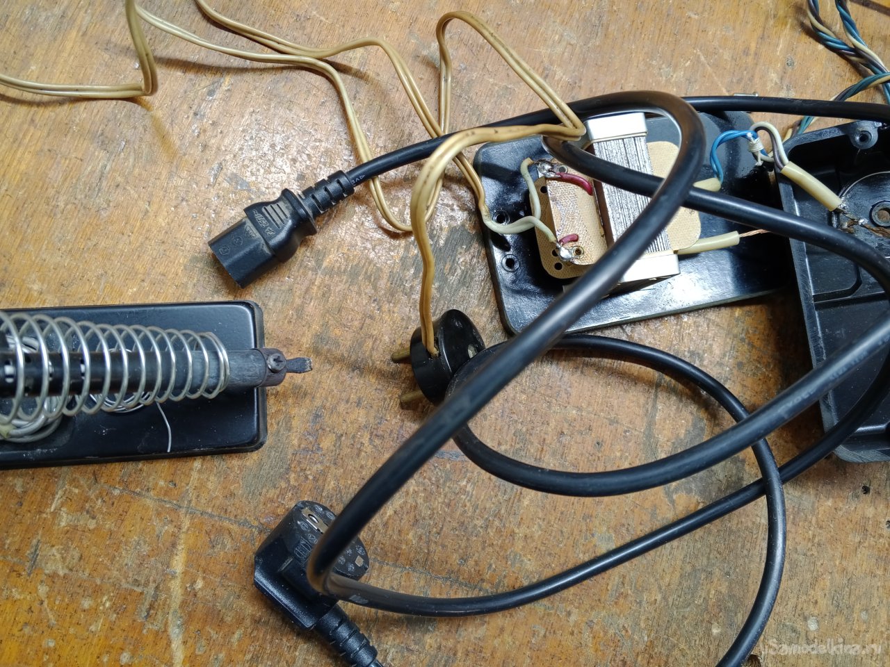 Сетевой шнур буду использовать от системного блока, отрезав розетку, с одной стороны. Отпаял старый шнур и провода от резистивного элемента.