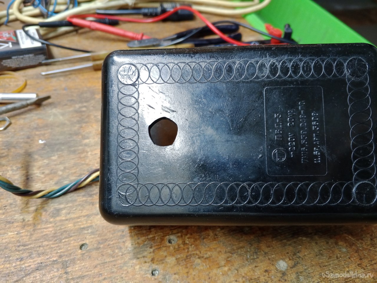 Разбирать корпус было уже неохота, все провода были уложены «красиво». При помощи напильников расточил заводское тех отверстие, до нужных мне размеров. «Поженил» половинки корпуса, ещё раз поправив внутренние провода, чтобы не было КЗ.