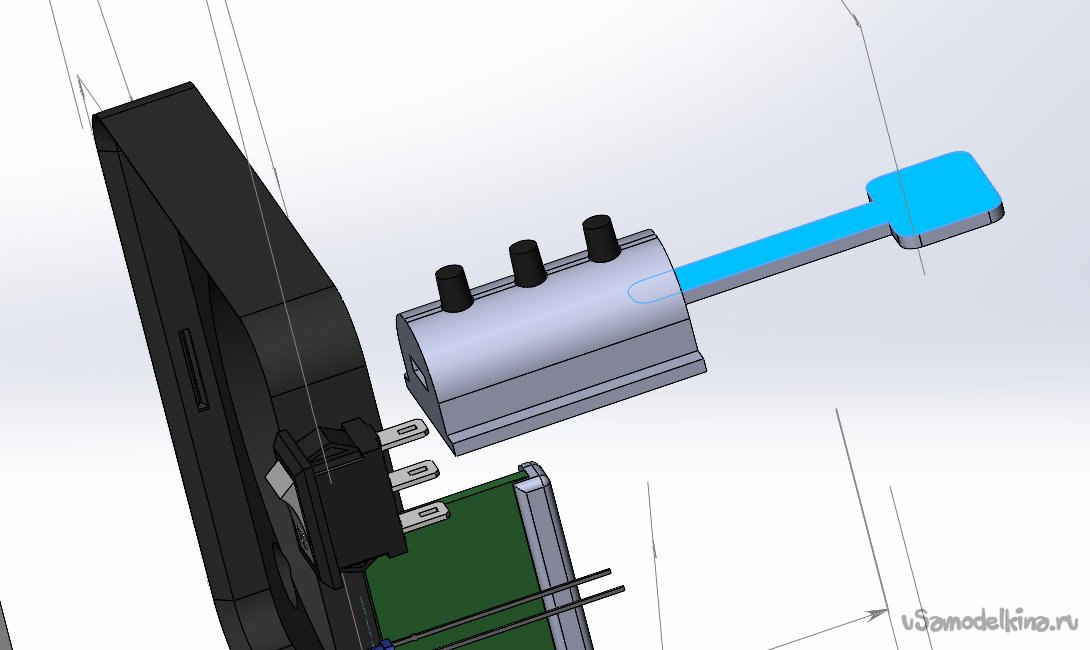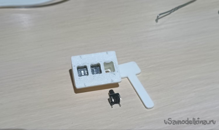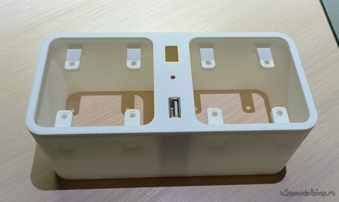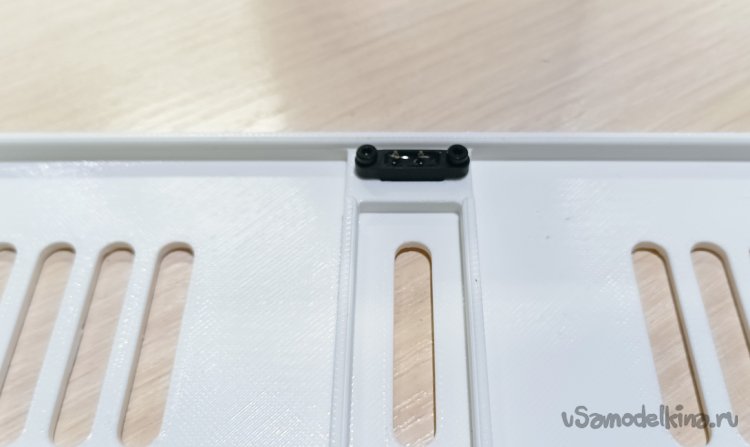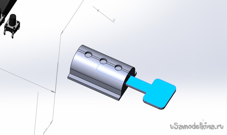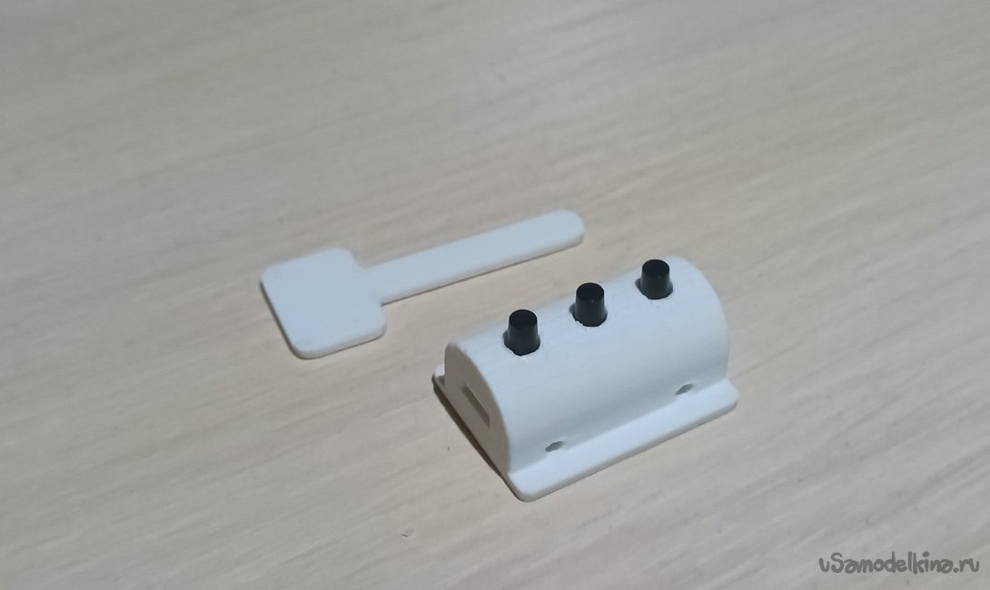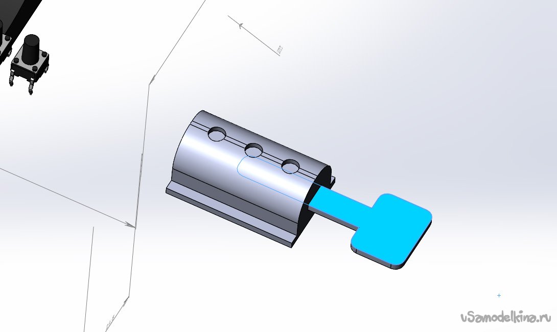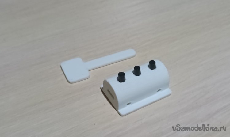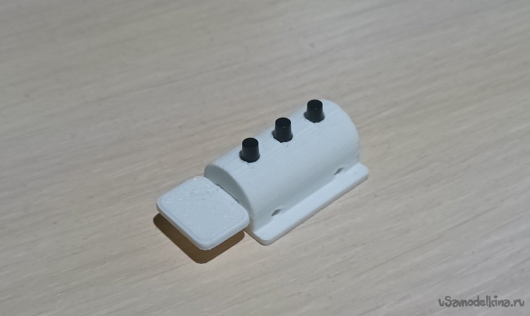 После печати полки для кнопок необходимо сверлом 3-4мм рассверлить 3 отверстия для кнопок. В модели для возможности печати без поддержек первый слой отверстий сплошной.