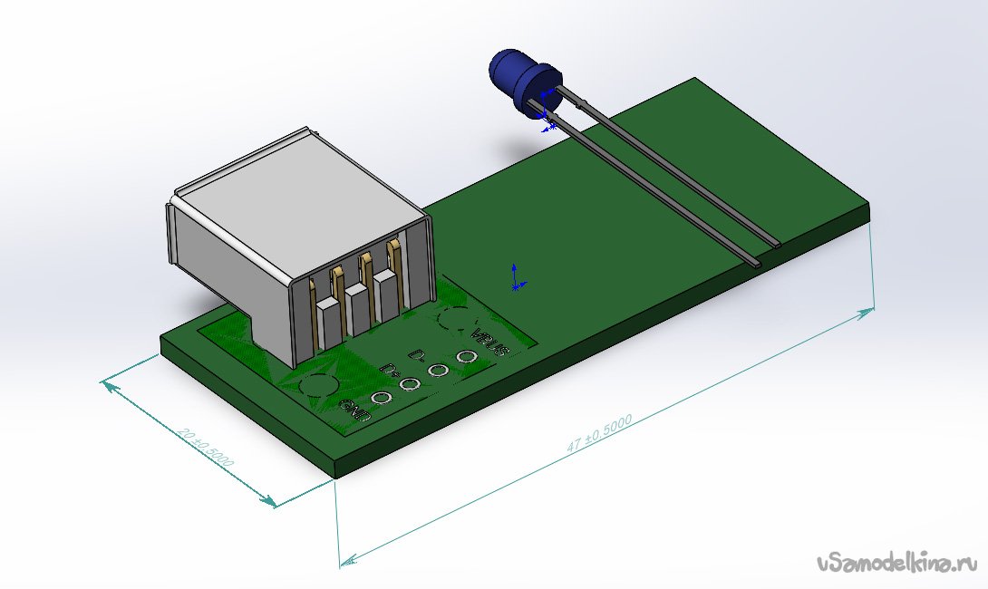 - макетная/прототипная плата 2x8 см для крепления разъема USB и светодиода – 1 шт.;