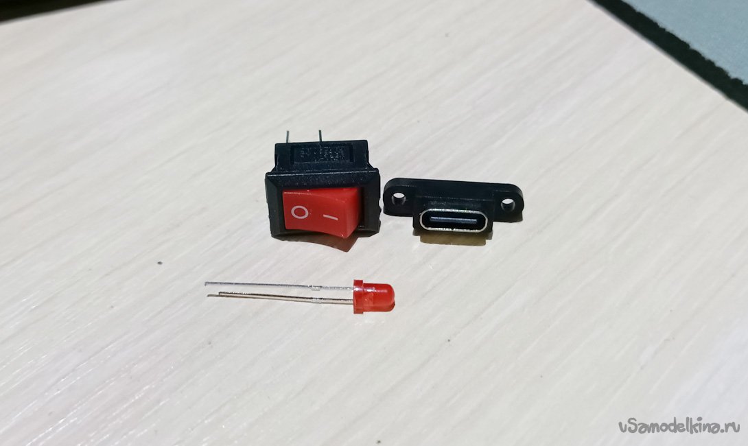 - разъем Type-C «мама» (или любой другой для внешнего питания 5В) – 1 шт. (если использовать другой разъем, то необходимо будет переделать соответствующее гнездо или вывести шнур питания наружу через отверстие для разъема);