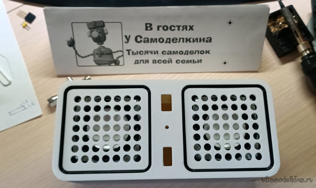 Чтобы убедиться, что все компоненты подходят друг к другу необходимо сделать пробную сборку. При необходимости надфилем обработать отверстия, чтобы винтики и электронные элементы плотно устанавливались в свои места. «Сетки» и задняя крышка крепятся на защелках. «Сетки» плотно входят в свои посадочные места - имейте это в виду, если хотите снять "сетки".