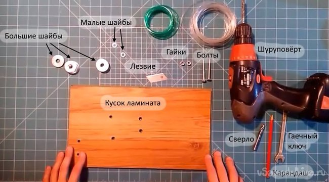 - кусок ламината или плоска доска, размером не меньше 15х15 см;