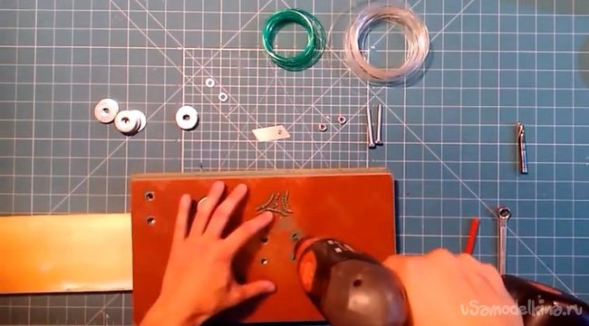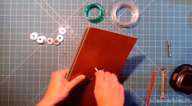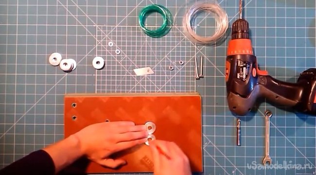1. Начинаем с разметки. Соединяем две шайбы вместе и отмечаем отверстия.