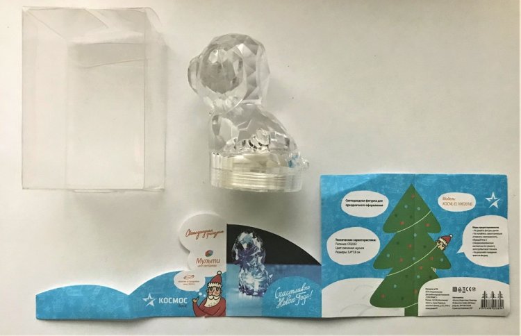 Светодиод HL1 (D = 5,1 мм.) RGBYW0 - 7 цветов (3,0 … 3,4 В; 20 мА) может быть заменён аналогичным, взятым из светодиодной фигурки собачки «Мультицвет светодиода» производства КНР 2018 года.