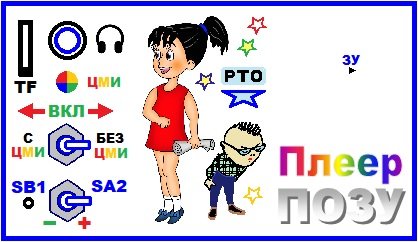 3). В плеере удачно решён вопрос маркировки органов управления. На задней стенке корпуса вклеен фрагмент фальшпанели с планом их размещения и ПБО (позиционными буквенными обозначениями).