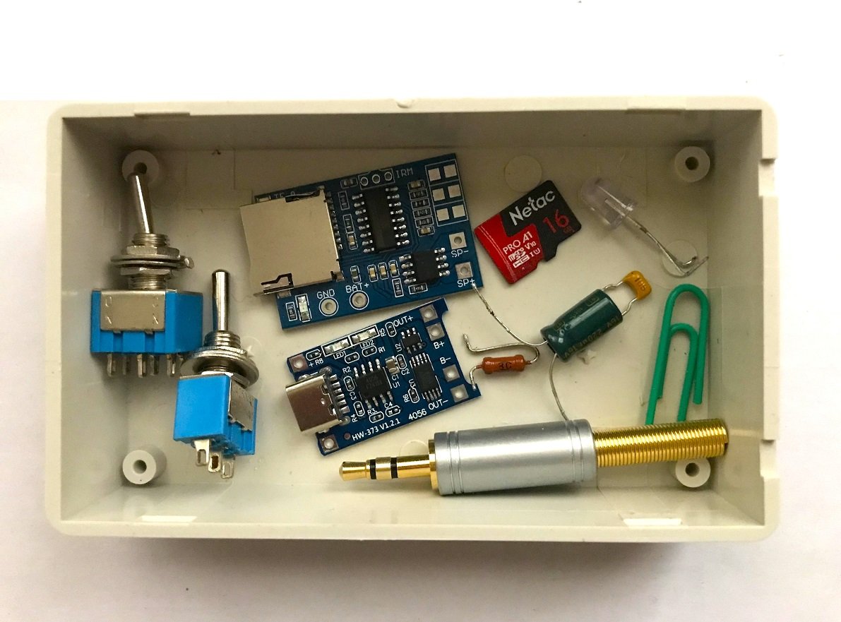 В качестве носителя звуковой информации используется TF-карта, с объёмом памяти 16 ГБ (32 ГБ – проверенный максимум). ПОЗУ поддерживает формат MP3 записанных треков.