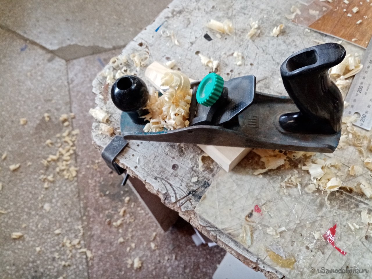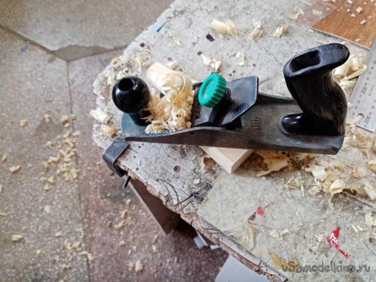 Толщина получается слегка больше нужной. При помощи рубанка убрал по плоскости миллиметров пять.