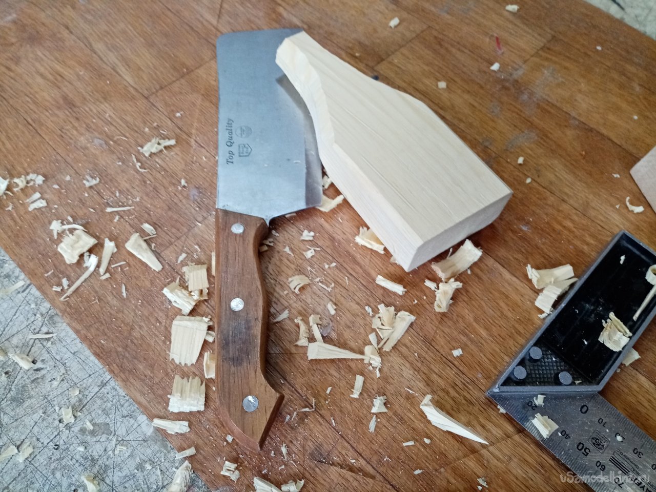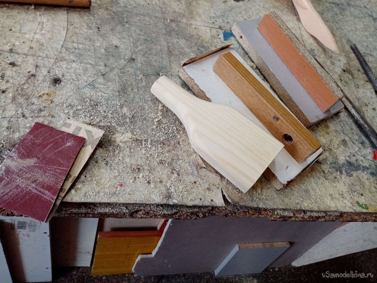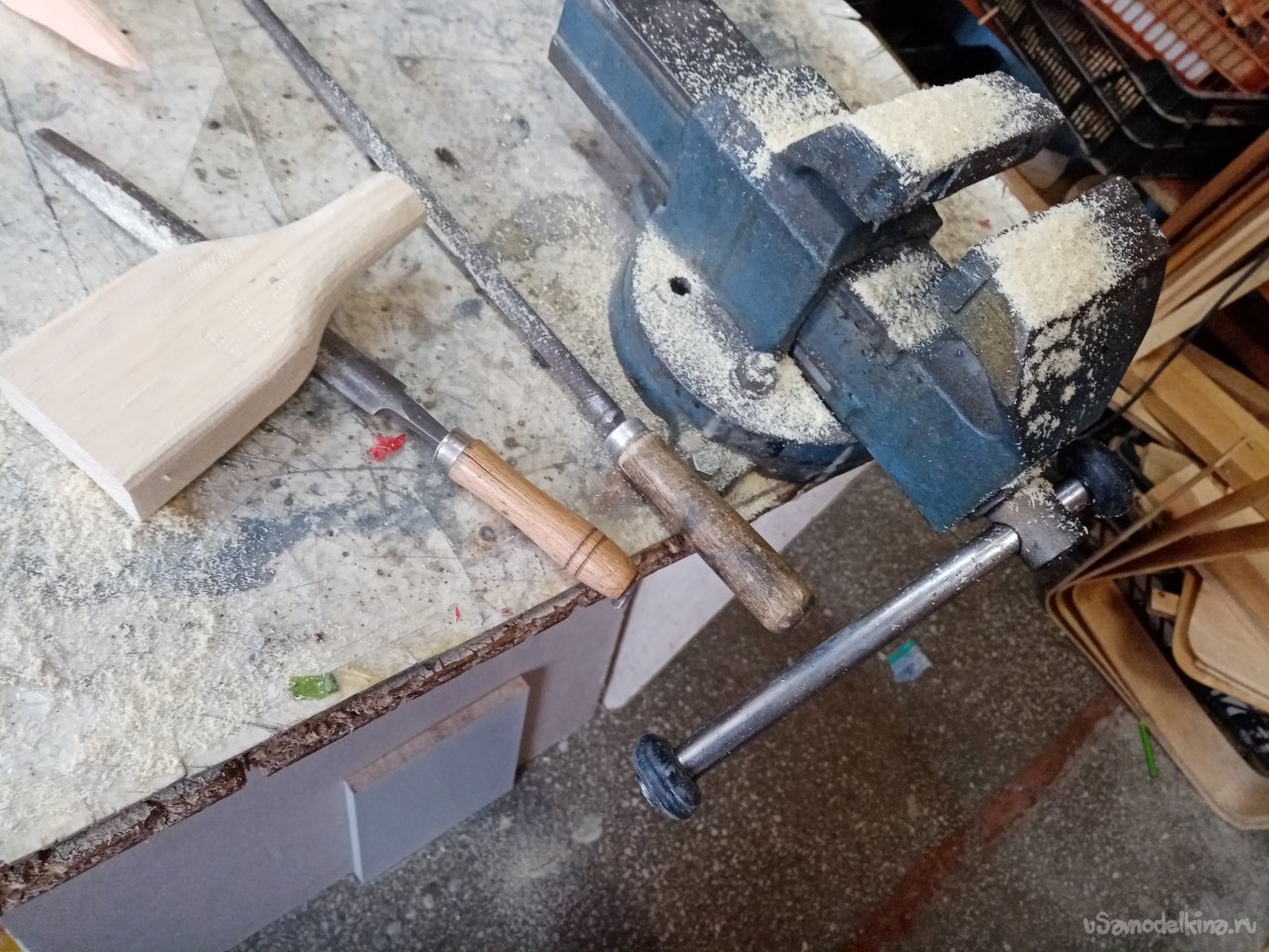 Кухонным тесаком закругляю грани заготовки. Завершаю рашпилем и шкурками различной зернистости.