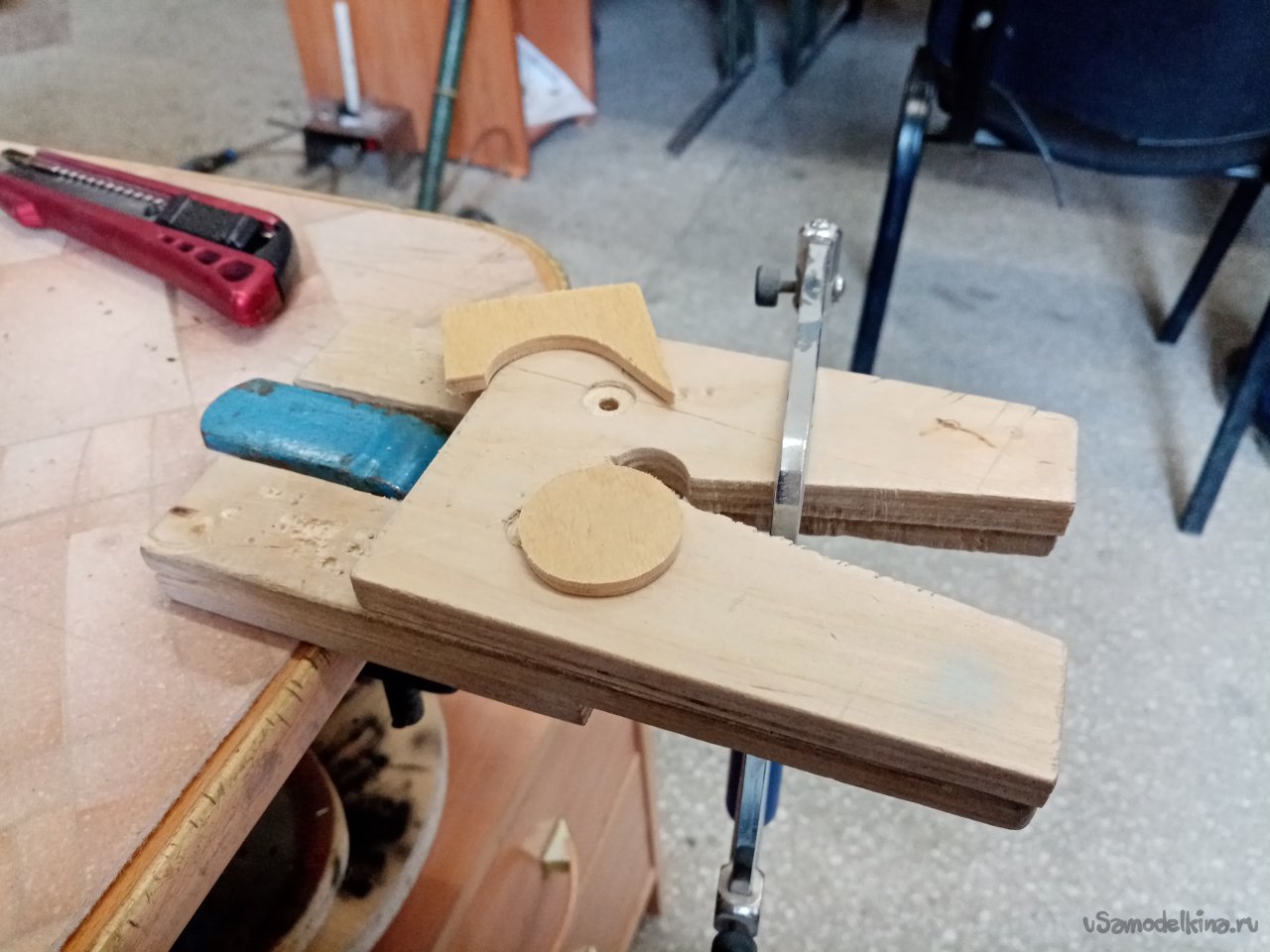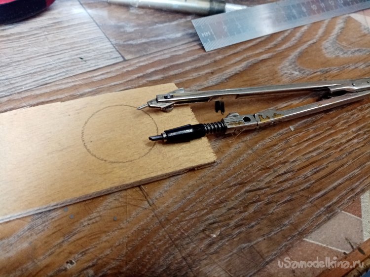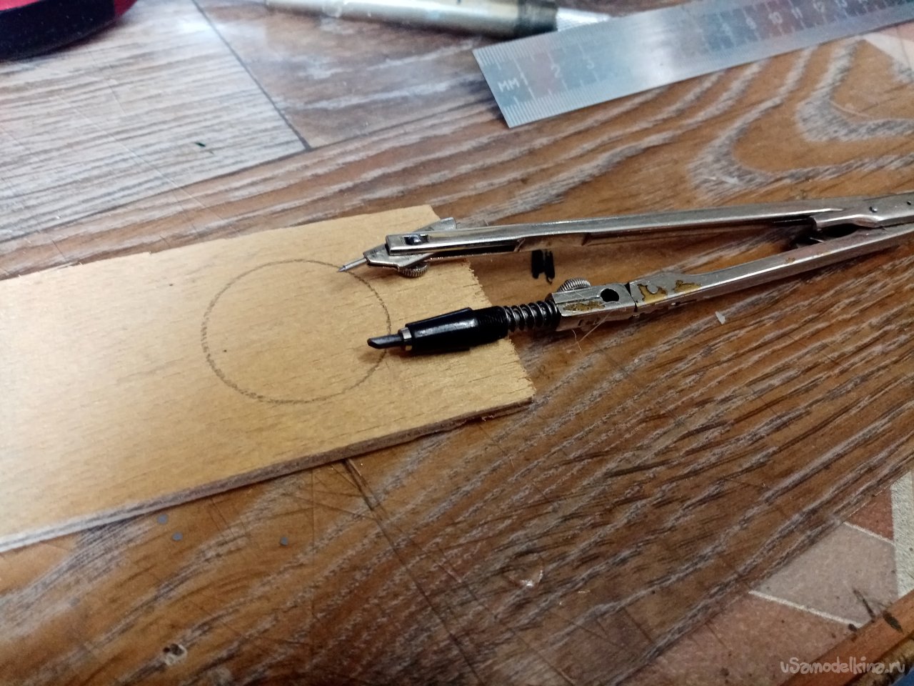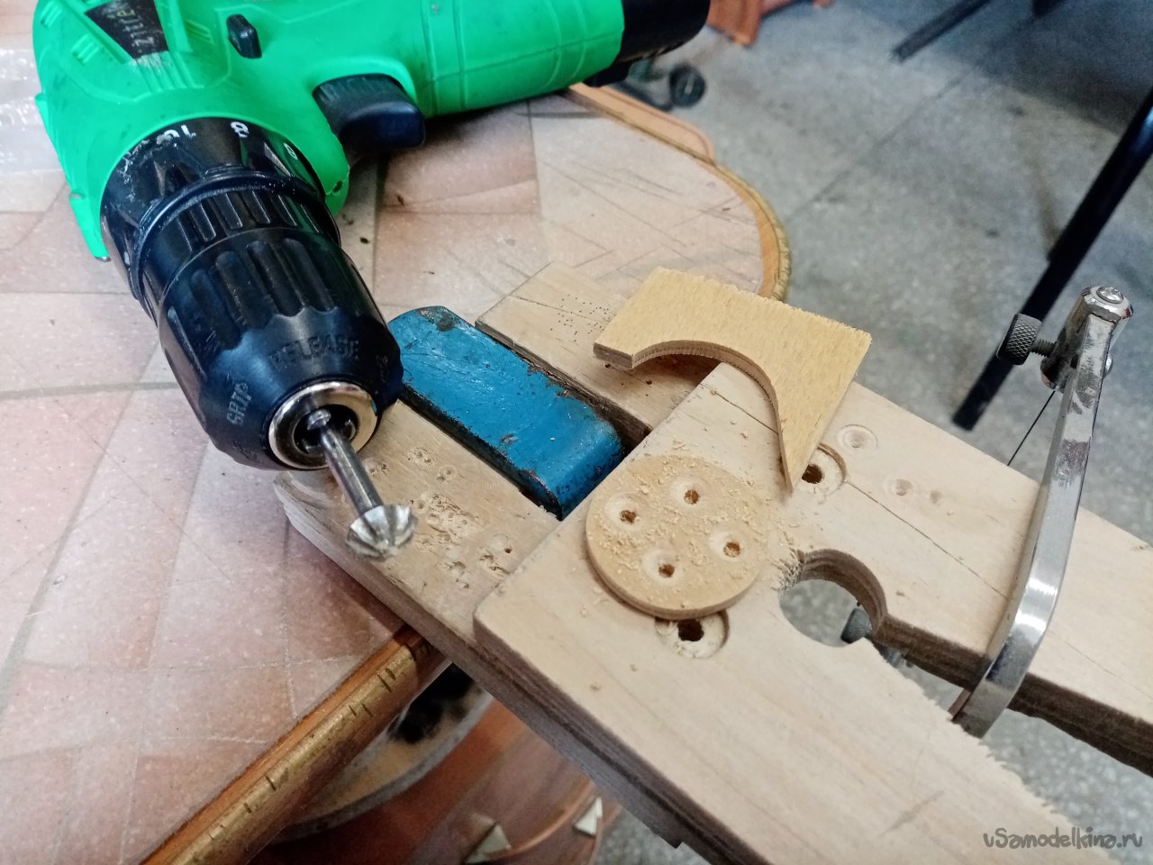 Пилю лобзиком и размечаю отверстия под болтики крепления.