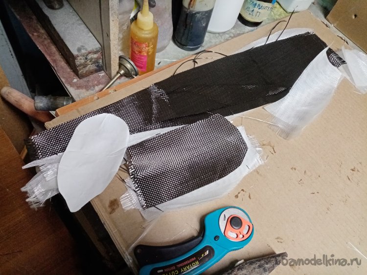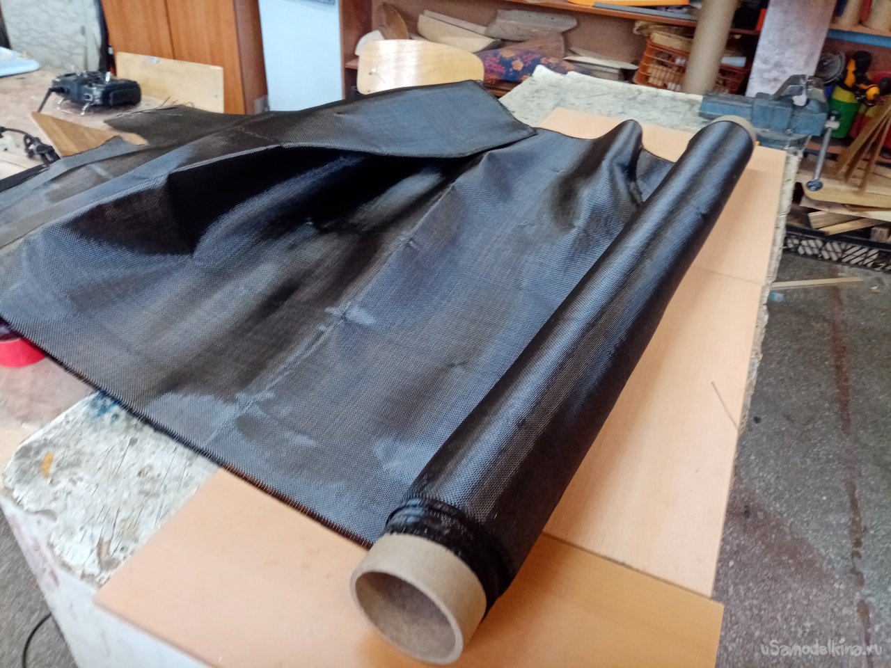 В моделку принесли подарок. Немного карбоновой ткани весом в 200 грамм. Она пойдет на внешний слой. Внутренний из стеклорогожи весом в 160 грамм.