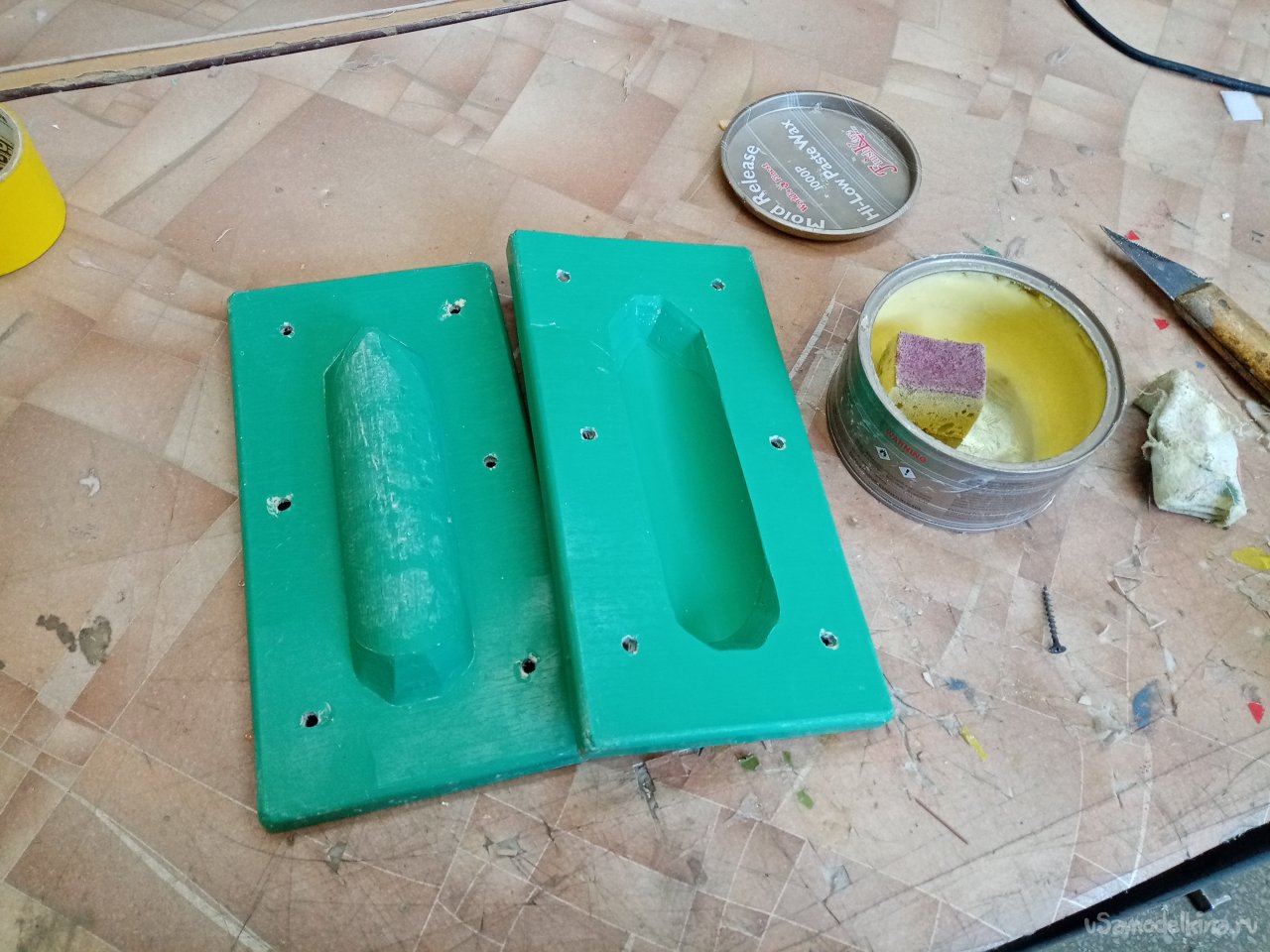Из бумаги изготовил шаблон выкройку на резку материала. Половинки матрицы натер разделительной ваксой с располировкой. Четыре слоя.