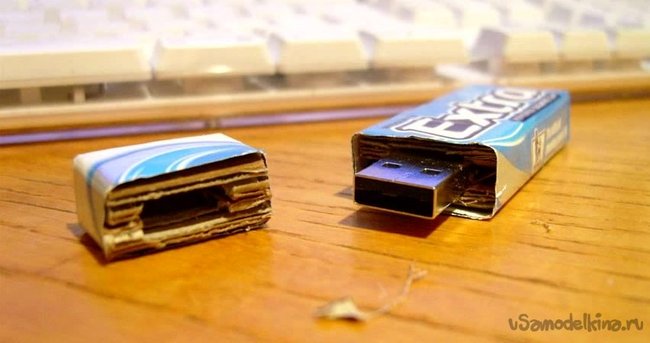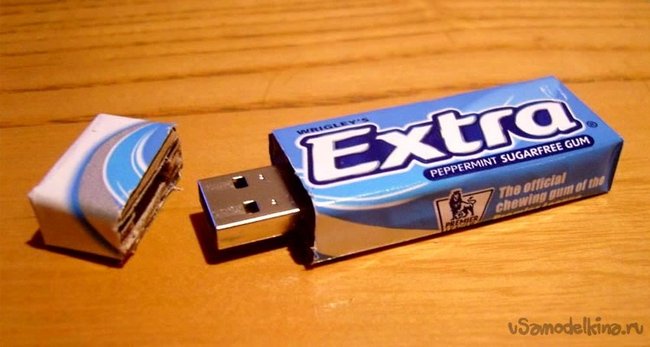Все, флешка готова. Теперь ее можно вставлять в ноутбук или компьютер и скачивать информацию. Друзья непременно оценят ваш творческий порыв и захотят себе такой же сувенир. Ну а если вам нужно будет спрятать на ней ценную информацию, то можете смело ложить на видное место, и не беспокоиться, что ее кто-нибудь найдет. На упаковку жвачки никто и не обратит внимание.