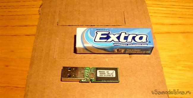 Теперь берем наши внутренности от старой флешки , кладем их на упаковку от жвачки и обводим. Важно, чтобы внутренности от флешки были меньше раза в полтора, чем сама упаковка от жвачки.