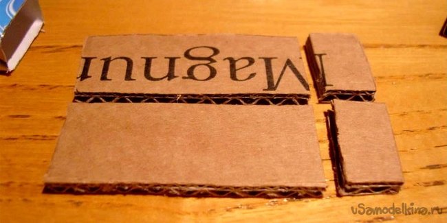 Берем заготовки от картона, которые мы делали на начальном этапе и делаем в них небольшие углубления для одной части флешки.