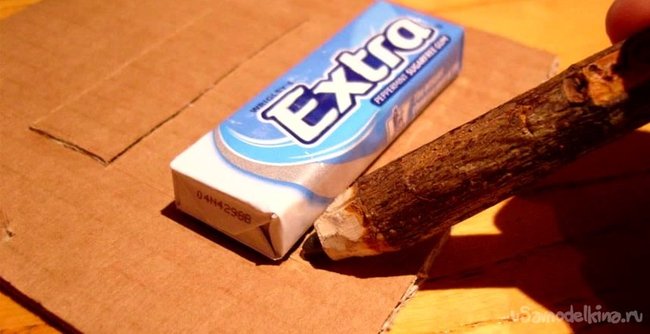 Первым делом нам нужно взять плотный картон и обвести упаковку от жвачки карандашом.