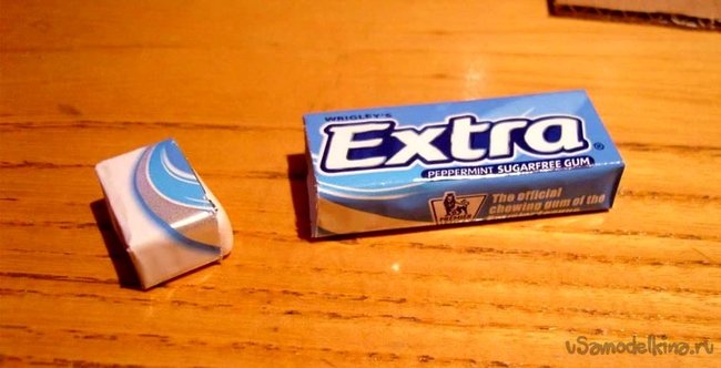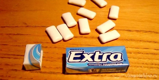 Разрезаем упаковку жвачки на уровне 3 подушечек жевательной резинки.