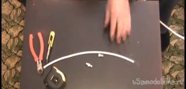 Теперь устанавливаем F-разъем на кабель. Канцелярским ножом надрезаем кабель на расстоянии около 2см от края и снимаем изоляцию.