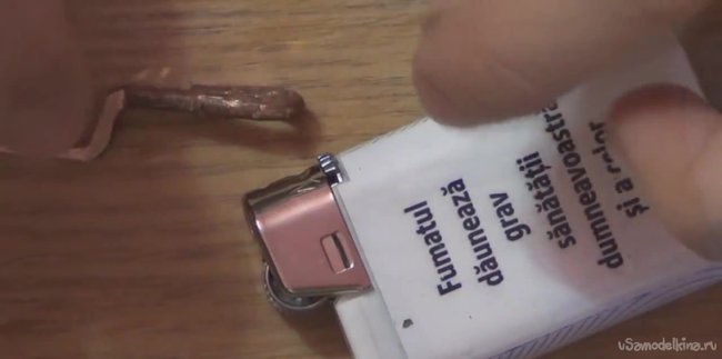 Выбирая зажигалку для работы, постарайтесь отказаться от дешевых вариантов. Потому что с такой зажигалкой длительной работы не получится, лапка будет нагреваться и затем плавиться. Лучше всего брать зажигалку, которая предназначена для горения на ветру. У нее будет более сильное пламя, что позволит «паяльнику» быстрее нагреваться, она не будет нагревать лапку и с ней работать будет намного эффективнее.
