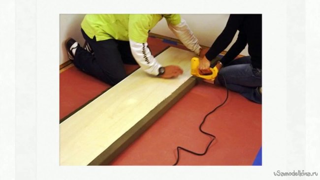 Следующим делом берем узкий брусок, который нам нужен в качестве дополнительного крепления на полу.