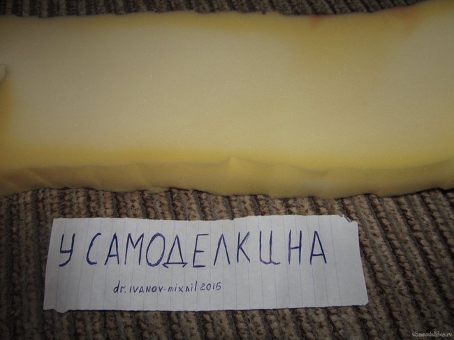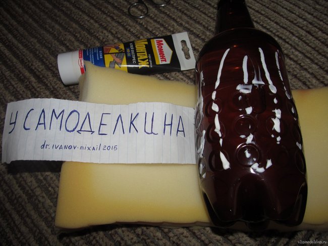 кусок поролона по ширине немного больше размера нашей бутылки...