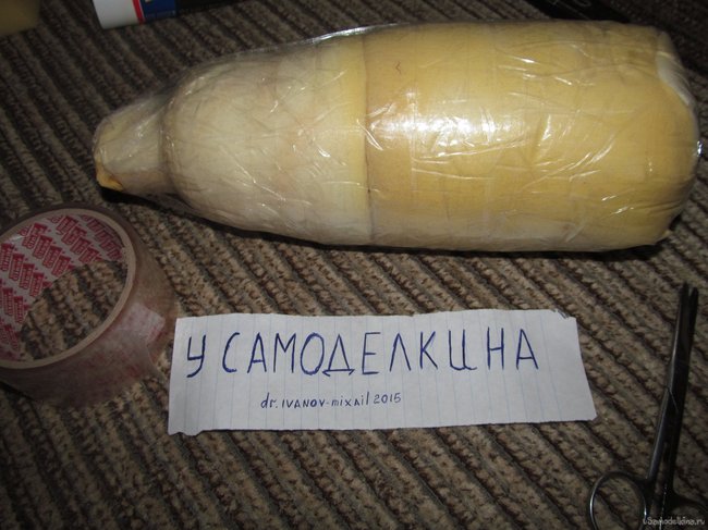У нас получилась "колбаска" из бутылки, обвёрнутой поролоном...
