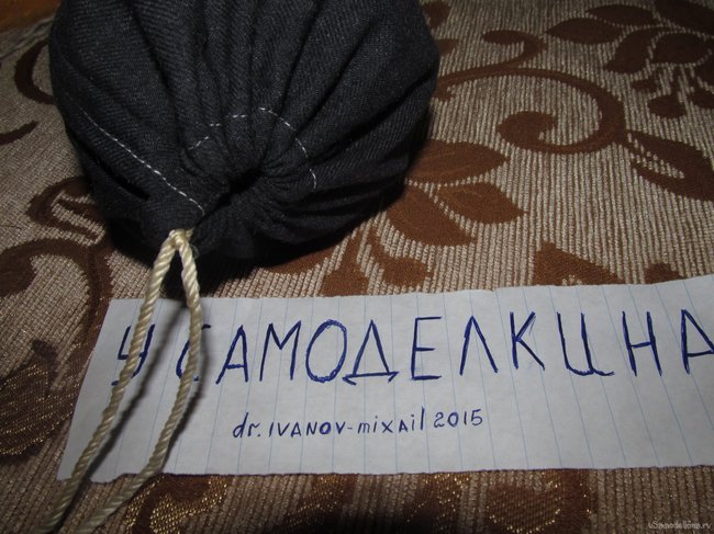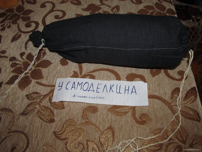 Теперь нужно обвернуть нашу "колбаску плотной тканью и на обоих концах закрепить ткань плотной верёвкой или резинкой...