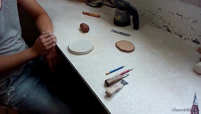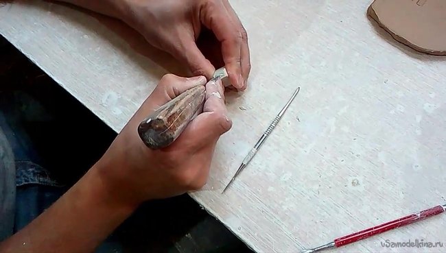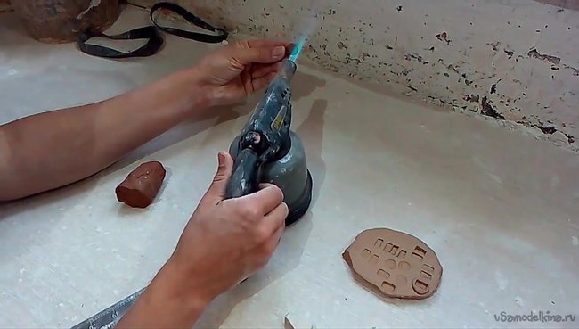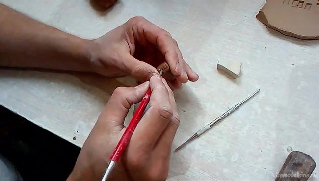 Если глину обжечь, то она станет крепкая и в отличие от гипса, она не будет сыпаться, можно делать достаточно глубокий рисунок.