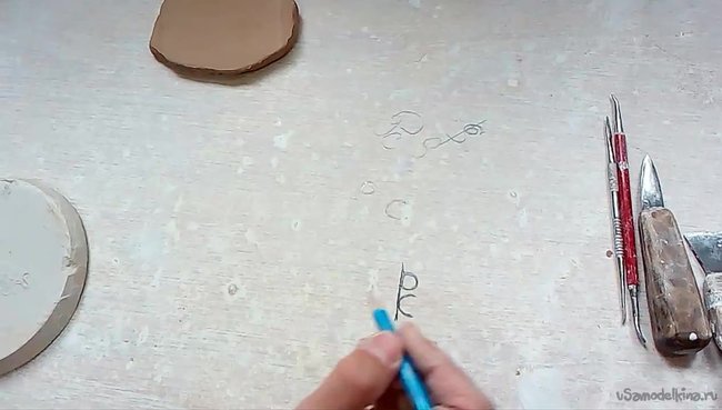 На боковой стороне формы простым карандашом нужно нарисовать свои инициалы или вашу фирменную символику.