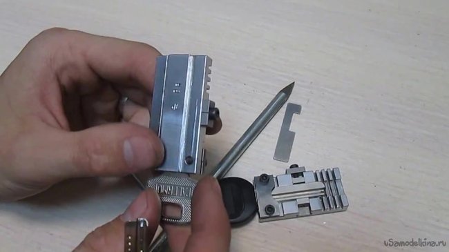 Один ключ делается примерно часа два. Если углубления в виде точек выбиваются надфилем, то канавки придется измерять и вырезать специальным прибором.