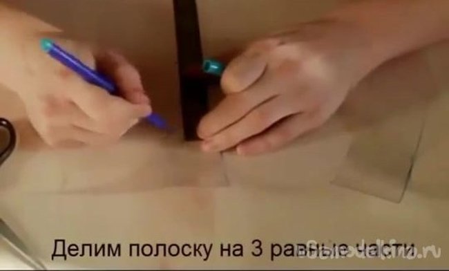 Далее маркером делим получившуюся полоску на три ровные части. Таким образом у нас должно получится две полоски, разделенные на три части.