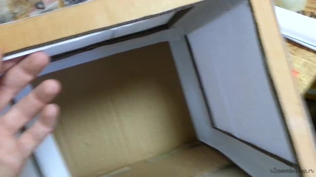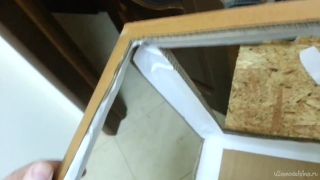 Две стороны, которые мы не обклеили бумагой, и они у нас остались коричневые, мы обклеиваем ватманом.