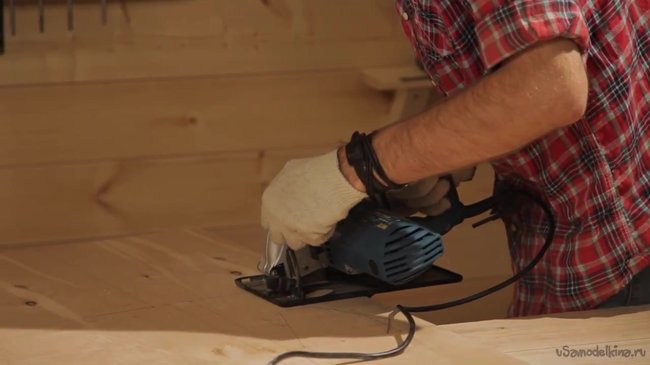 После того, как 4 квадрата необходимой длины у нас готовы, нам нужно будет вырезать небольшую канавку. Эта канавка необходима для того, чтобы через доску свободно проходила рама велосипеда. Всего нам понадобятся две доски с канавками.
