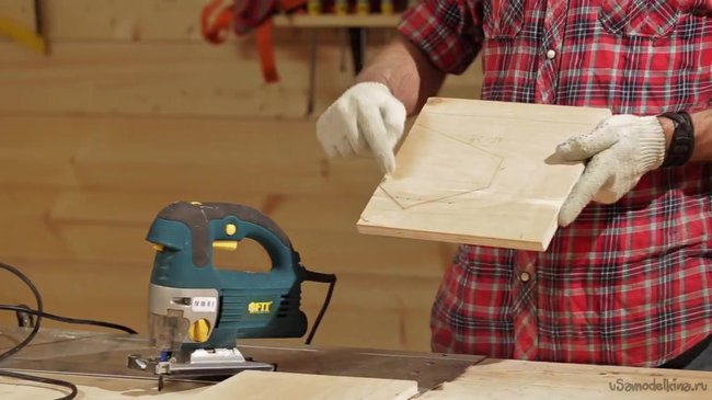 Из толстой фанеры мы будем вырезать 4 основные детали. Две детали у нас должны получиться размером 25 на 23 сантиметра и две детали 25 на 37 сантиметров. Вырезать мы будем квадраты.