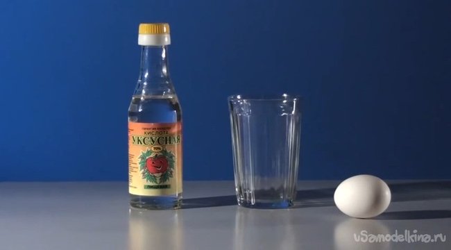 Возьмите стакан и налейте в него столовый уксус. Учтите, что его крепость должна составлять 9%. Иначе эксперимент может не удаться.