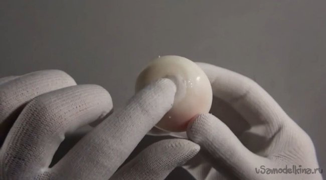 Теперь скорлупы на яйце нет – осталась лишь плёнка. Она очень прочная, поэтому на ощупь яйцо будет как резиновое. Играть с яйцом просто – бросайте его на стол, а оно будет отскакивать.