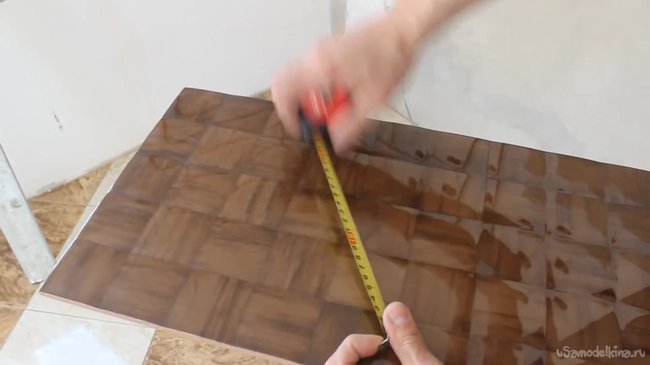 Укладываем плитку до угла. В углу, при необходимости, ее нужно будет аккуратно разрезать, подогнав под размер оставшегося расстояния.