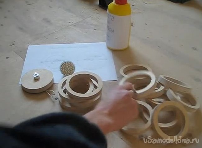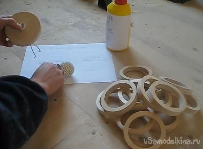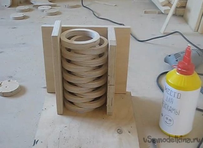 Проблема в том, что как бы вы не старались, у вас не получится абсолютно ровно склеить кольца, поэтому нужно будет сделать такое приспособление для того, чтобы склеить заготовки ровно: