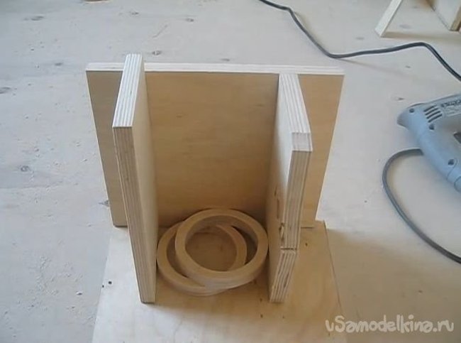 Итак, первое кольцо будет опираться к задней стенке и левой стенке нашей конструкции, а второе кольцо будет наоборот - к задней стенке и правой стенке...