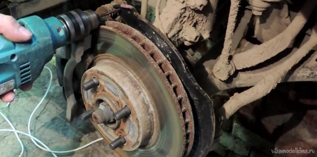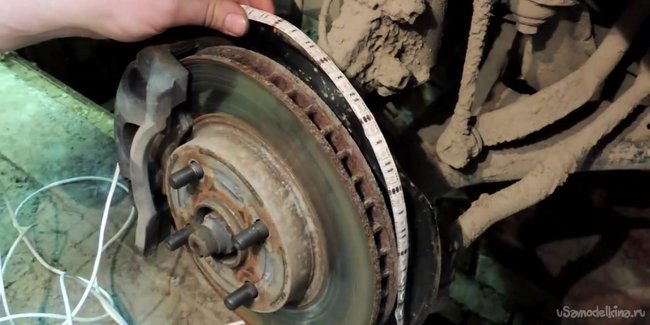 Далее крепим диодные ленты. Крепить ихнужно накожух тормозных колодок припомощи пластиковых хомутов. Дляэтого нужно просверлить кожух повсему радиусу.
