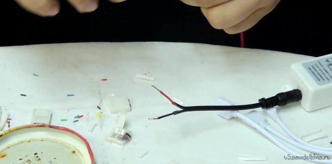 Наэтом этапе нам следует подготовить силовой кабель на12 вольт дляпитания блока управления диодной ленты.
