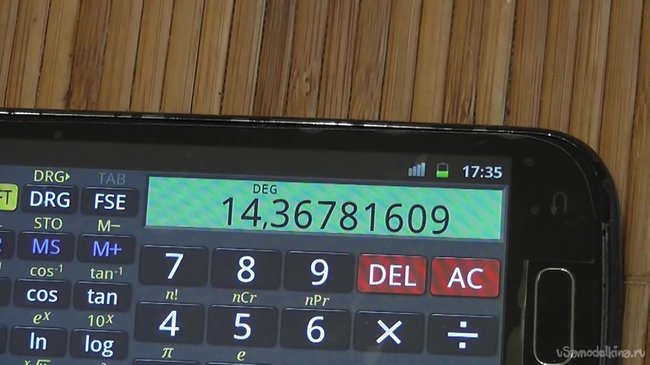 Теперь при помощи калькулятора и специальной формулы нам предстоит узнать необходимую длину нашей антенны. Формула предельно проста: 7500 нужно разделить на число частоты канала. У автора частота канала ровна 522000 кГц, то есть нужно разделить 7500 на 522. Получается 14.3 приблизительно. Округляем полученный после деления результат и получаем длину антенны в сантиметрах.
