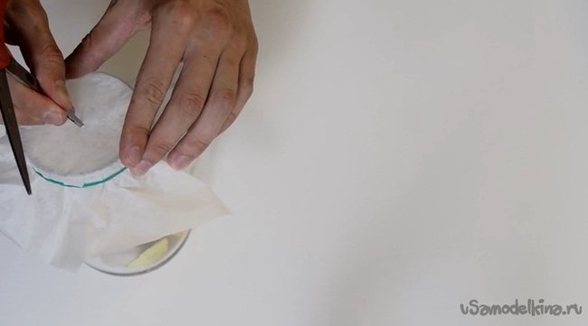Посредине пергамента сделайте небольшое отверстие с помощью ножниц.