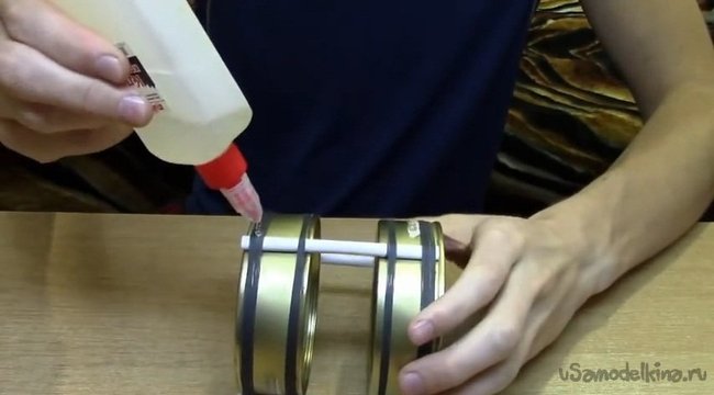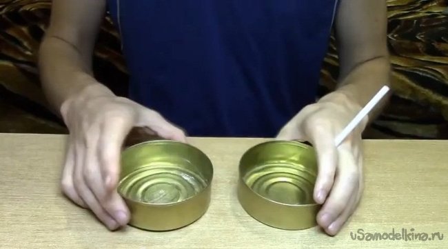 Возьмите две консервные банки. Рекомендуется использовать низкую жестяную тару из-под кильки, бычков, шпрот. Она хороша тем, что не имеет шва на дне.