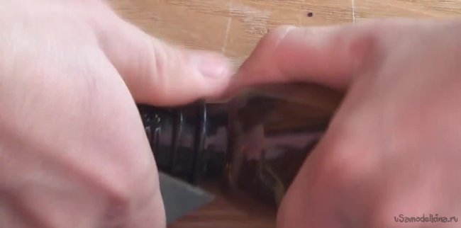 Отрезаем горлышко бутылки и выравниваем его внешнюю часть канцелярским ножом.