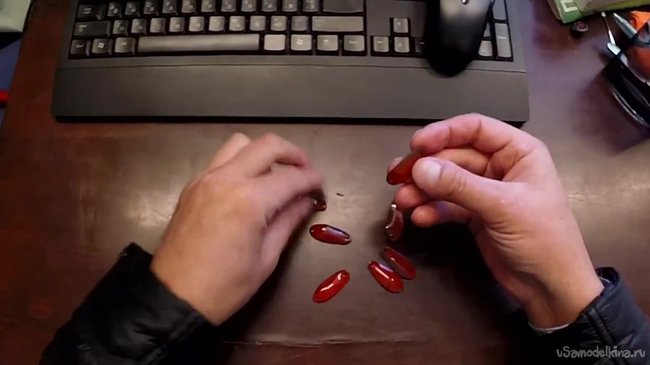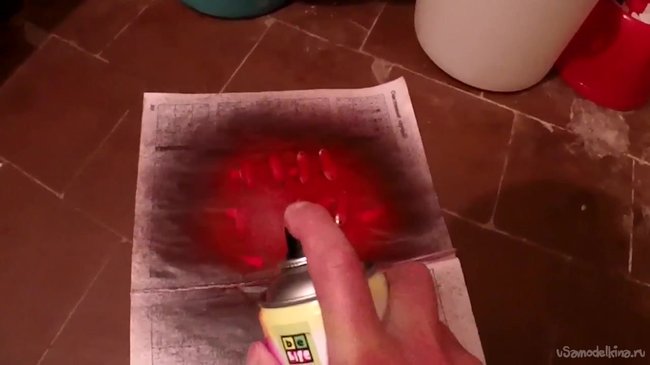 Теперь нам предстоит покрасить заготовки. Автор использует черную аэрозольную краску. Поверх черной краски на одной стороне наносим красную краску и покрываем заготовки лаком.